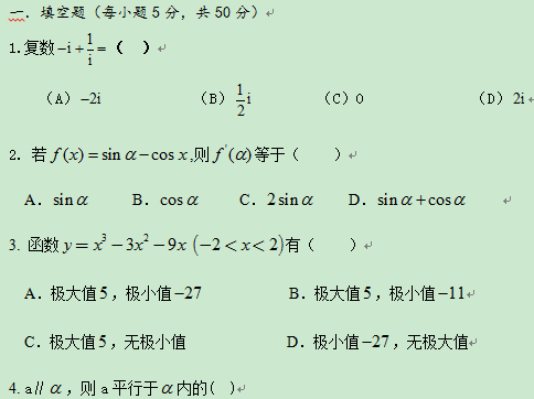 四川省雅安中学2013-2014学年高二下期4月月考(数学理)