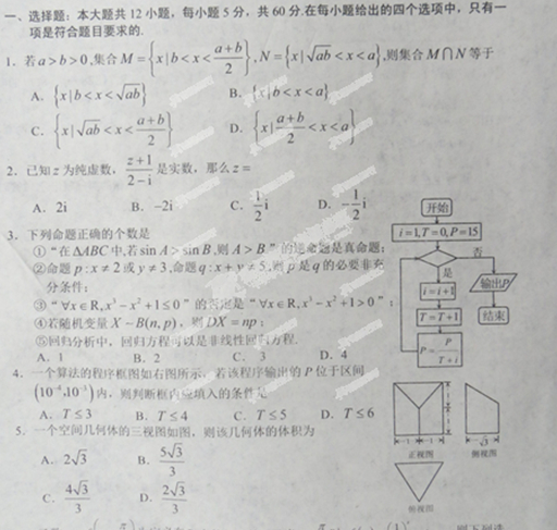 河南省中原名校2014届高三下学期第二次联考(数学理)(扫描版)