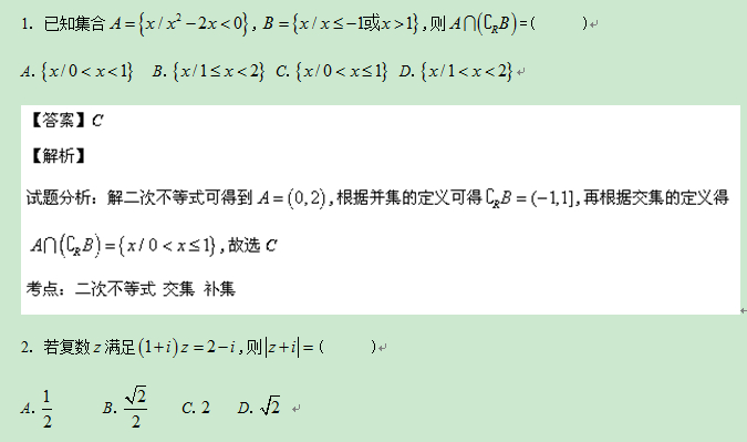 浙江省嘉兴市2014届高三3月教学测试(数学文)解析版