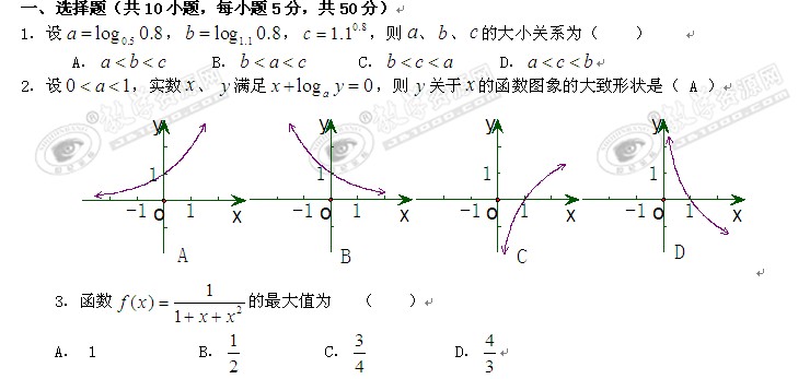 贵州省兴义九中09-10学年高一上学期期中考试(数学)