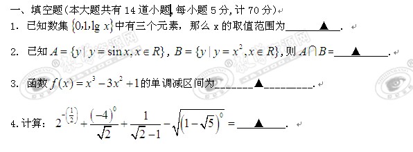江苏省苏州中学2010届高三上学期阶段测试一(数学)