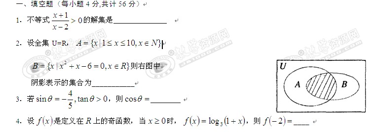 上海市部分重点中学2010届高三第一次联考(数学理)