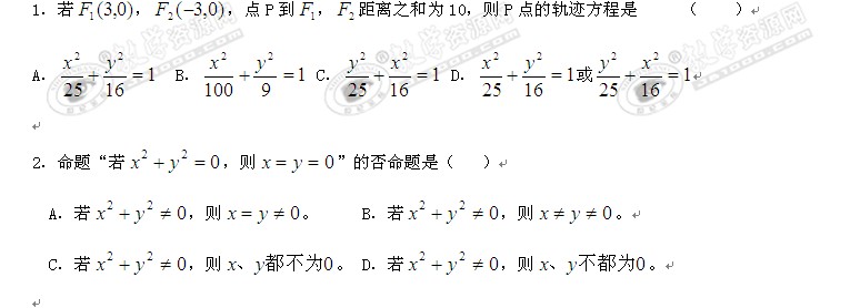 广东省湛江一中09-10学年高二12月质检(数学文)