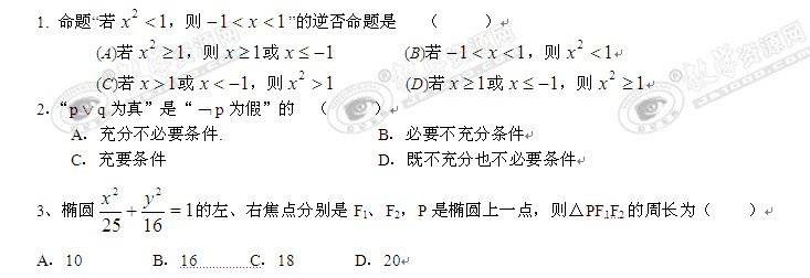 陕西省西安第一中学09-10学年高二上学期第二次月考(数学文)