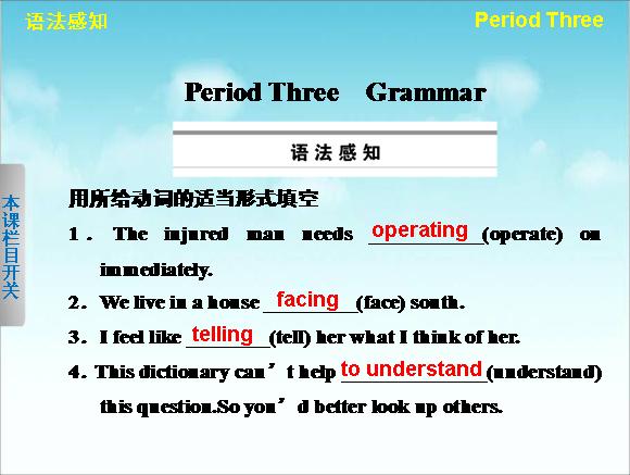 人教版必修4课件:Unit 4 Body language Period Three Grammar