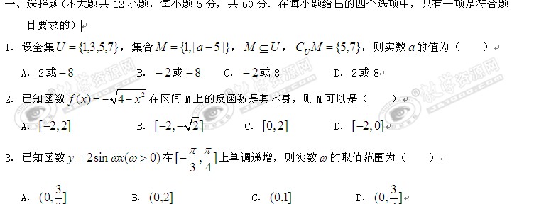 江西省九江一中2010届高三上学期第三次月考(数学理)