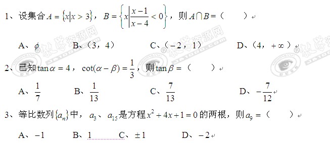 江西省九江一中2010届高三上学期第三次月考(数学文)