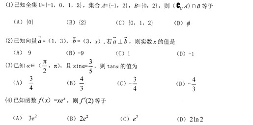山东省日照市高三上学期12月份全市调研考试(数学文)