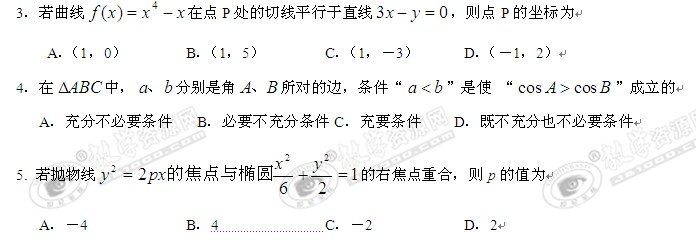 山东省淄博市2010届高三上学期期末考试(数学文)