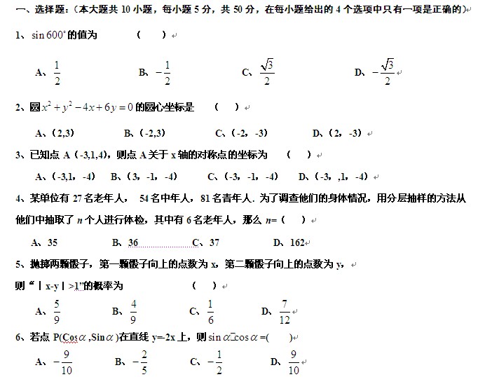 山东省德州市乐陵一中2013-2014学年高一下学期期中考试(数学)