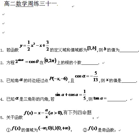 河北省保定市高阳中学2013-2014学年高二下学期第三十一次周练(数学)