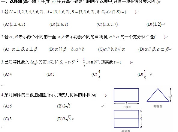 四川省成都七中2014届高三5月第一次周练(数学文)