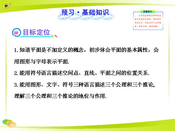 2013版高中数学全程学习夺冠方略配套课件:1.2.1平面的基本性质(苏教版必修2)