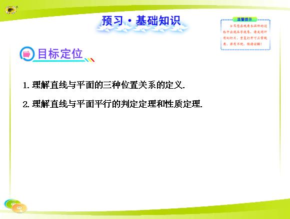 2013版高中数学全程学习夺冠方略配套课件:1.2.3.1直线与平面平行(苏教版必修2)