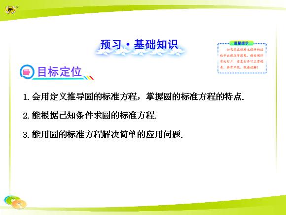 2013版高中数学全程学习夺冠方略配套课件:2.2.1.1圆的标准方程(苏教版必修2)