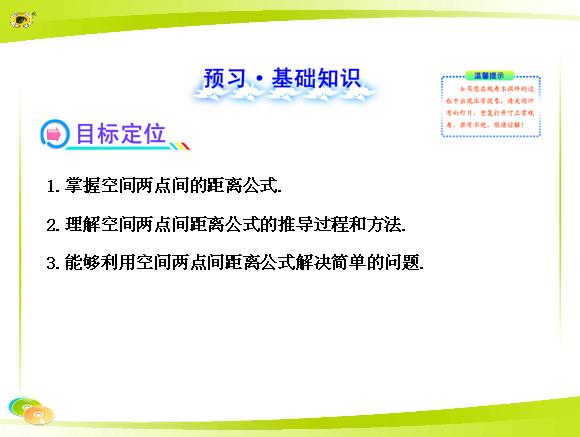2013版高中数学全程学习夺冠方略配套课件:2.3.2空间两点间的距离(苏教版必修2)