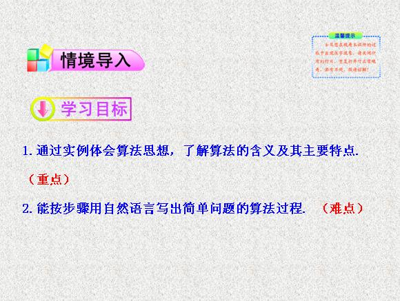 2013版高中数学全程学习夺冠方略多媒体课件:1.1 算法的含义(苏教版必修3)