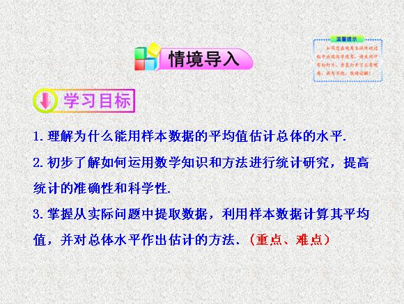 2013版高中数学全程学习夺冠方略多媒体课件:2.3.1 平均数及其估计(苏教版必修3)