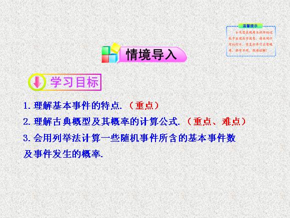 2013版高中数学全程学习夺冠方略多媒体课件:3.2 古典概型(苏教版必修3)