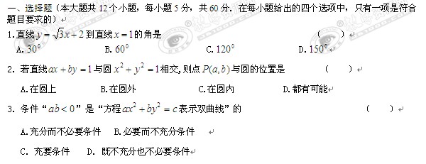 四川省广安二中09-10学年高二上学期期中考试(数学)