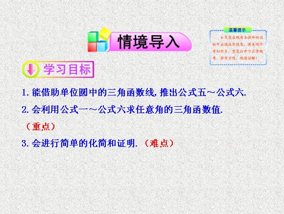 2013版高中数学全程学习夺冠方略多媒体课件:1.2.3 第2课时 三角函数的诱导公式五、六(苏教版必修四)