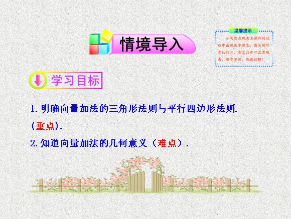 2013版高中数学全程学习夺冠方略多媒体课件:2.2.1 向量的加法(苏教版必修四)
