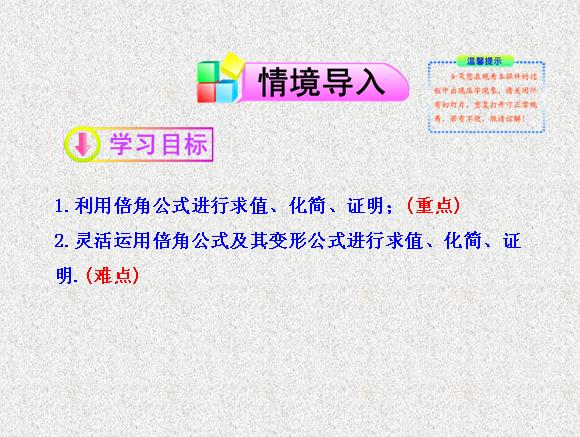 2013版高中数学全程学习夺冠方略多媒体课件:3.2 第2课时 二倍角的三角函数的应用(苏教版必修四)