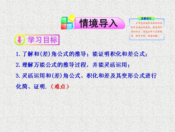 2013版高中数学全程学习夺冠方略多媒体课件:3.3 几个三角恒等式(苏教版必修四)