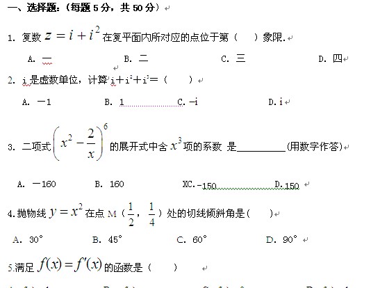 广东省东莞市第五高级中学2013-2014学年高二下学期期中考试(数学理)