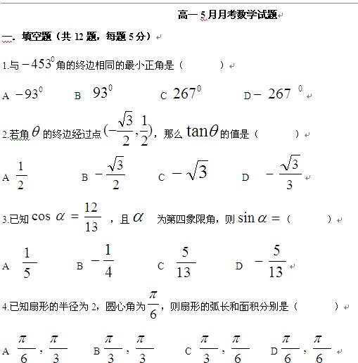 河北省故城县高级中学2013-2014学年高一5月月考(数学)