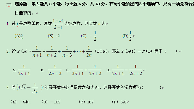 广东省东莞市南开实验学校2013-2014学年高二下学期期中考试(数学理)