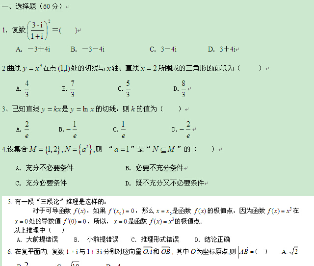河北省邢台二中2013-2014学年高二下学期第二次月考(数学理)