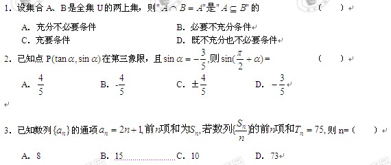 贵州省2009年普通高等学校招生适应性考试(数学文)