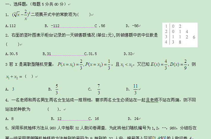 黑龙江省哈六中2013-2014学年高二下学期期中考试(数学理)