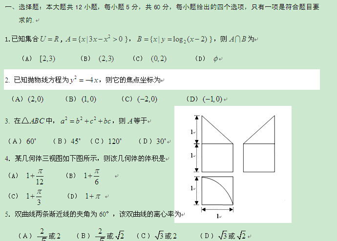 内蒙古赤峰市宁城县2014届高三5月模拟考试(数学文)