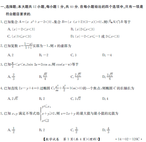 内蒙古通辽市2014届高三4月模拟考试(数学理)扫描版