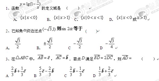 湖南省衡阳市2010届高三三校12月联考(数学文)