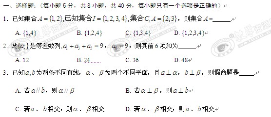 湖南省长沙市一中2010届高三第六次月考(数学文)