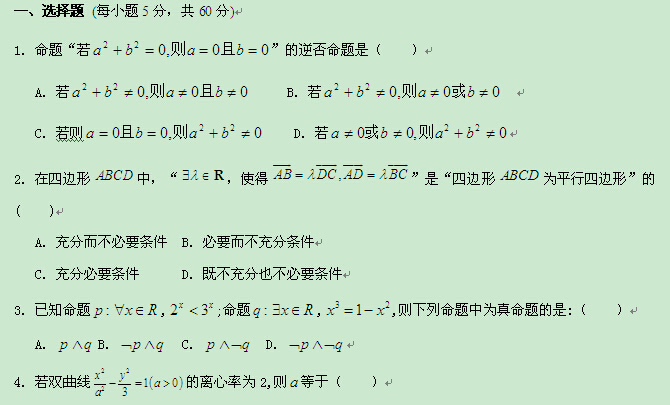 山东省济宁市嘉祥一中2013-2014学年高二5月质量检测(数学理)