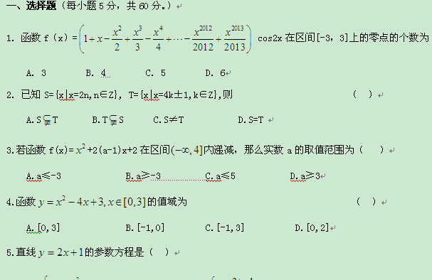 山东省济宁市嘉祥一中2013-2014学年高二5月质量检测(数学文)