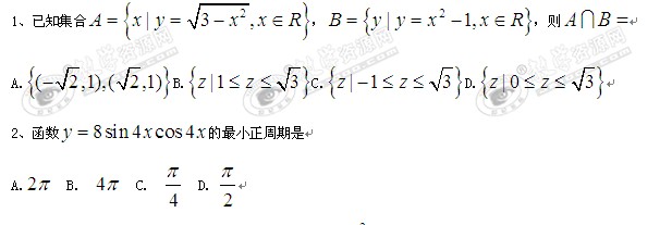 四川省内江市2010届高三第一次模拟考试(数学理)缺答案