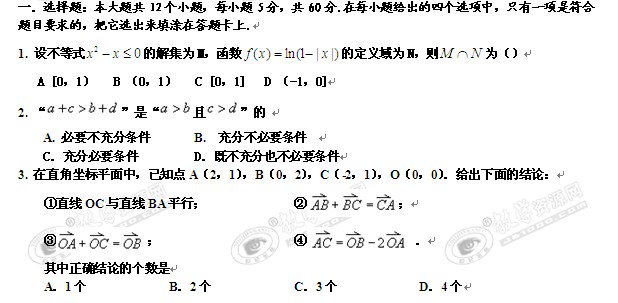 四川省绵阳南山中学2010届高三1月月考(数学文)
