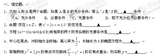 江苏省东海高级中学09-10学年高二第二次学情调查(数学)