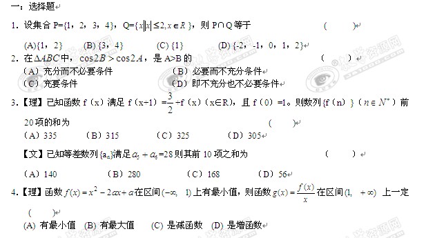 河南省焦作十一中2010届高三上学期第四次月考(数学)