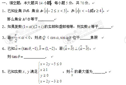 江苏省兴化中学2010届高三朴实课堂调研测试(数学)