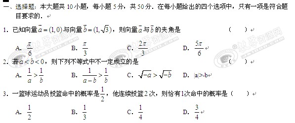湖南省八校2010届高三上学期第二次联考(数学文)
