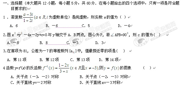 河南省郑州市47中2010届高三第一次模拟考试(数学理)
