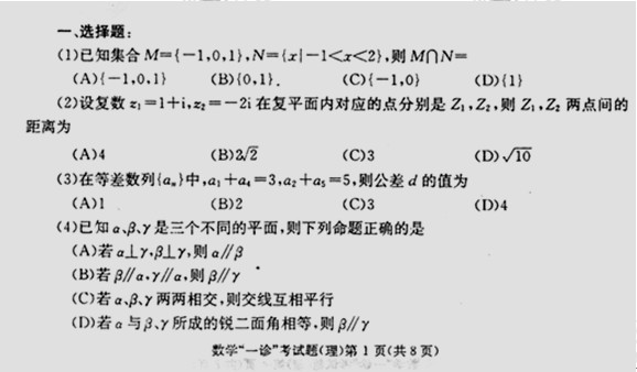 四川省成都市2010届高三毕业班综合能力测试(数学理)(扫描版)