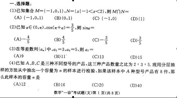 四川省成都市2010届高三毕业班综合能力测试(数学文)(扫描版)