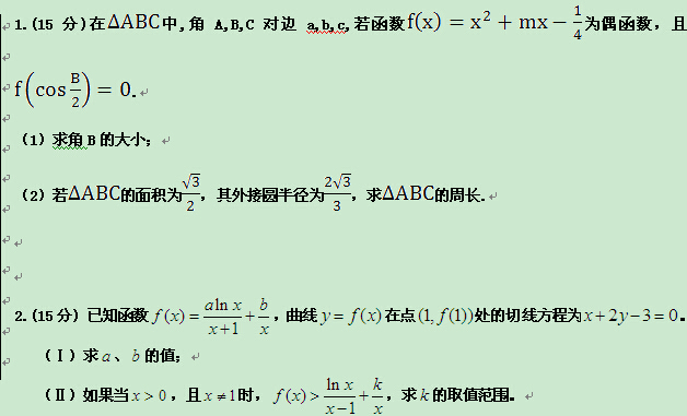 黑龙江省双鸭山一中2013-2014学年高二下学期期末考试(数学文)能力测试